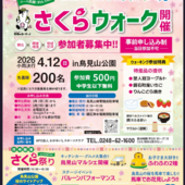 鏡石町観光ガイド トップページ > 鏡石町観光ガイドからのお知らせ 2026.03.14 牧場の朝の町 ✿さくらフェスティバル✿ ✿桜の季節✿ 鏡石町でさくらを満喫しませんか(●´ω`●) ✿さくらフェスティバル✿が開催されます。 ☆2026.4.12 (日) ★鳥見山公園 ☆10:00~16:00 ♩♪♫イベント盛りだくさん♪♬♫ 沢山のご来場お待ちしておりますヾ(≧▽≦)ノ ※小雨決行 ... 続きはこちら 2026.03.02 \さくらウォーク事前申し込み開始/ ✿さくらウォーク開催のお知らせ✿ 4月12日(日)鳥見山公園で開催される『鏡石さくらフェスティバル』において、 鳥見山公園をスタート・ゴールとした《さくらウォーク》を実施致します(*´▽`*) 参加ご希望の方は事前のお申込みをお願い致します。 3月2日(月)本日より受付を開始し、定員(先着2... 続きはこちら 2026.01.20 鏡石町 さくら祭り出店者募集のお知らせ! 鏡石町にて、 ・4月12日(日) ・鳥見山公園 今年も!さくら祭りが開催されます(*´▽`*) それに伴い、一般出店者を募集致します。 多数の場合は、鏡石町内を優先とさせて頂きます。 ご了承ください。 ※募集受付は終了致しました。... 続きはこちら 2025.03.25 牧場の朝の町 ✿鏡石さくらフェスティバル✿ 桜の季節♪鏡石町でさくらを満喫しよう!!日時:2025.4.13(日) 10:00~16:00場所:鳥見山公園ステージイベント満載(*´▽`*)沢山のご来場お待ちしております。※小雨決行 ... 続きはこちら 2025.03.21 花の王国ふくしま ⁂フラワースタンプラリー⁂ 福島県内の花の名所を巡って、スタンプを集めて商品を当てよう! 福島県内の花の名所207か所を巡って、スタンプを集めましょう。スマホを使ったGPSスタンプと専用のスタンプ台紙で参加できます!もちろん参加費用は無料※!スタンプ2個から応募できるので、福島県に来たらぜひ参加してください! ※通信費用はご利... 続きはこちら 2025.03.11 2024かがみいしフォトコンテスト審査結果 コンテストは、「未来に伝えたい鏡石町」をテーマに、風景やイベントなどの観光資源をより多くの方に知っていただくために開催しており、入賞作品は広告・パンフレットなど観光宣伝の素材として活用されます。受賞した作品などは4月下旬頃から5月上旬頃までイオンスーパーセンター内で展示される予定です。 2024フ... 続きはこちら 2025.03.10 \さくらウォーク事前申し込み開始/ ☆さくらウォーク開催のお知らせ☆ 4月13日(日)鳥見山公園で開催される「鏡石さくらフェスティバル」において、 鳥見山公園をスタート・ゴールとした「さくらウォーク」を実施いたします。 参加ご希望の方は事前のお申込みをお願いいたします。 3月10日(月)より受付を開始し、定員(先着200名)と... 続きはこちら 2024.12.16 ★牧場のあーさー♪誕生祭★ いつもご縁をありがとうございます(*´▽`*) 2024.12.21(土) 牧場のあーさー♪誕生祭を開催いたします☆彡 【場所】鏡石町健康福祉センター ほがらかん 【時間】10:00~16:00 牧場のあーさー♪バースデーケーキのお披露目や、牧場のあーさー♪の〇✕クイズなど イベント盛りだくさんです... 続きはこちら 2024.10.07 ☆キッチンカー&ふれあいマーケット☆ 【開催日時】2024.10.13日 【開催場所】鳥見山公園南側駐車場 ☆入場料無料 ☆雨天決行・悪天中止 ☆*---☆*---☆*---☆*---☆*---☆*---☆*--- 健幸ウォーキングに併せて キッチンカー&ふれあいマーケットを開催いたします!!! 当日、約25店舗出展予定となっておりま... 続きはこちら 2024.10.04 \農家の本気のクレープ/ ーMADE IN 鏡石ー ≪開催日時≫10月12日(土) 11:00~16:00 ≪開催場所≫JR鏡石駅東口 【開催期間】10月13日(日)~19日(土) 11:00~16:00 【開催場所】鳥見山公園西側 鏡石産のシャインマスカットや洋ナシ、リンゴなどをふんだんに使った「農家の本気クレープ」、... 続きはこちら < 前 1 2 3 4 5 6 7 次 >