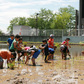 色の異なる稲を絵の具の代わりに、田んぼを一枚のキャンパスに見立てて絵を描く"田んぼアート"。鏡石町では、"福幸"(復興)のシンボルとして一般参加者と町民が一体となって自然のアートを作り出しています。